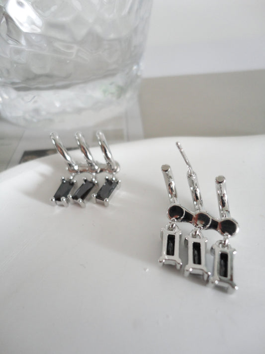 Silver Black Zircon Three in One Stud Earrings
