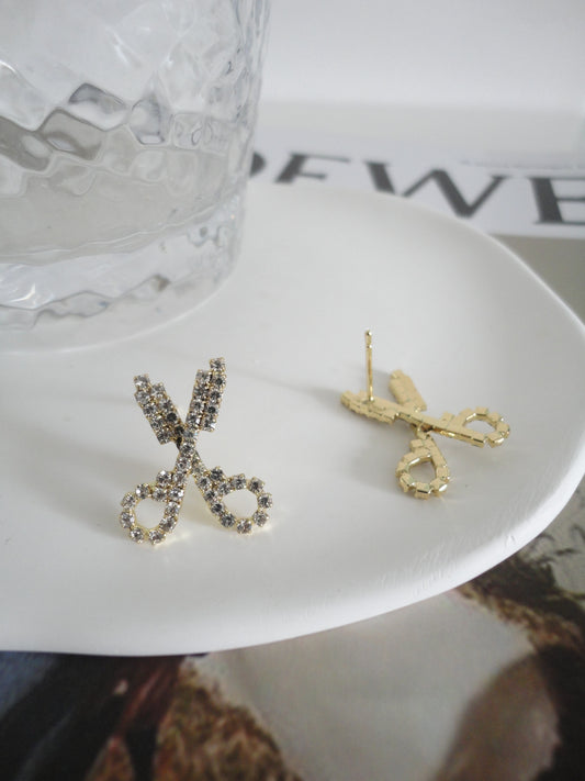 Scissors Shaped Diamante Stud Earrings