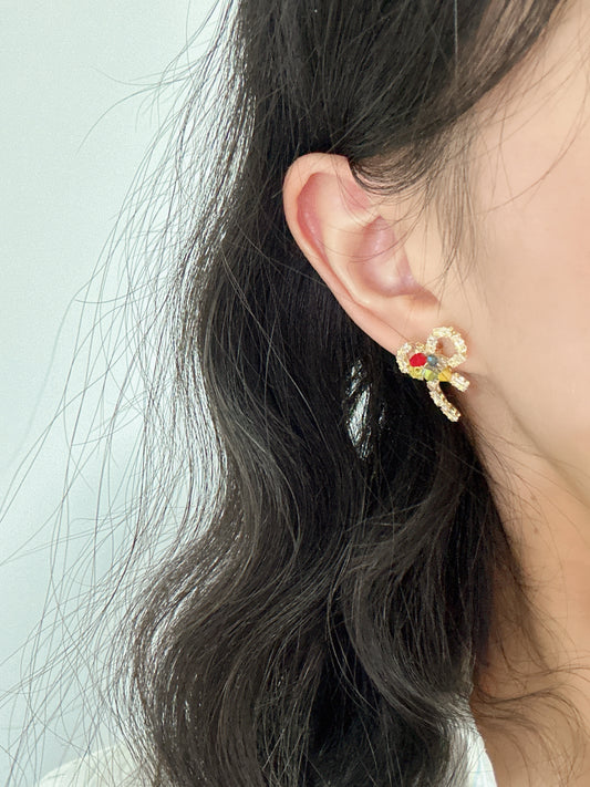 Beaded Zircon Bow Stud Earrings
