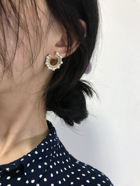 Golden Pearlised C Curve Diamante Stud Earrings