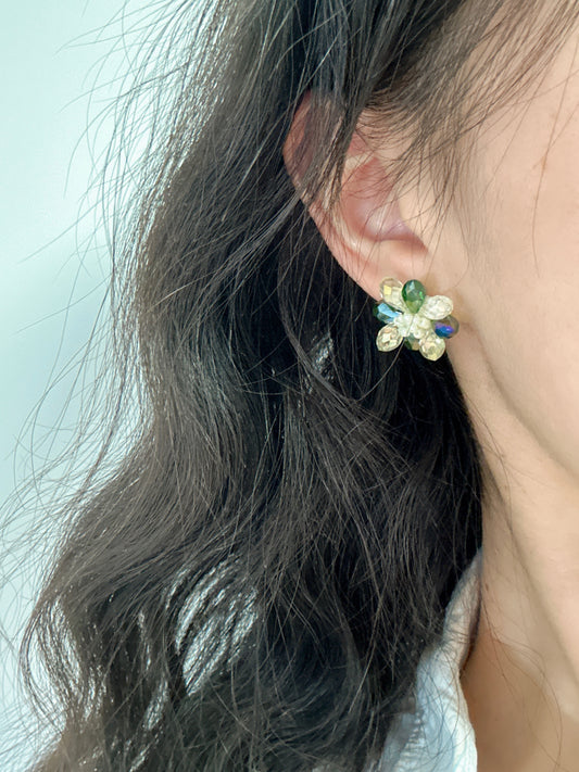 Square Classic Vintage Hemispheric Green Stud Earrings