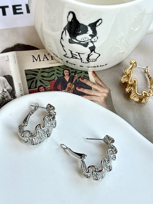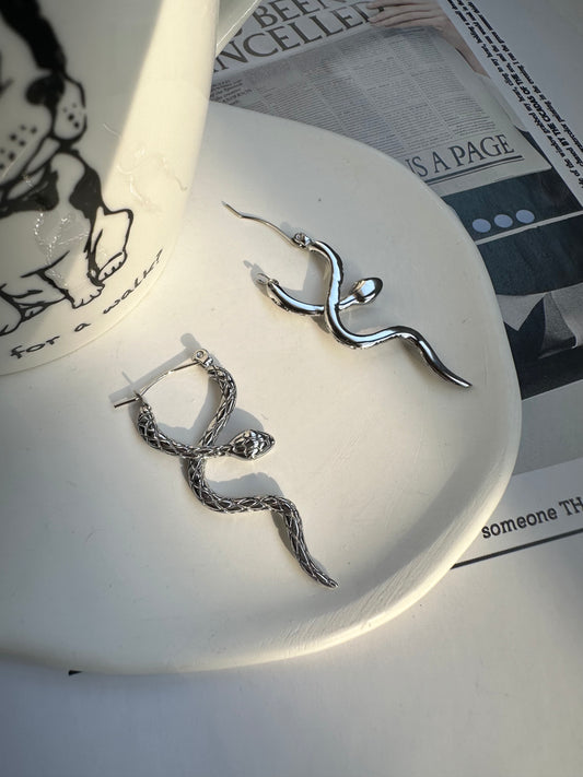 Titanium Steel Silver Crossed Snake Hoop Earrings