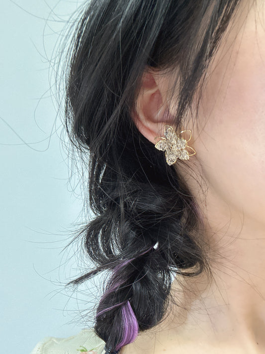 Vintage Purple Diamante Golden Cross Stud Earrings