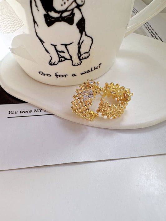Titanium Steel Golden Grid Zircon Hoop Earrings