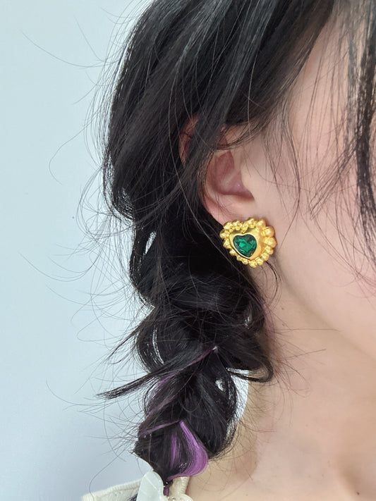 Titanium Steel Golden Lock with Green Zircon Hoop Earrings