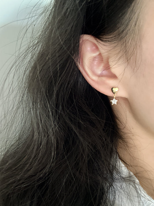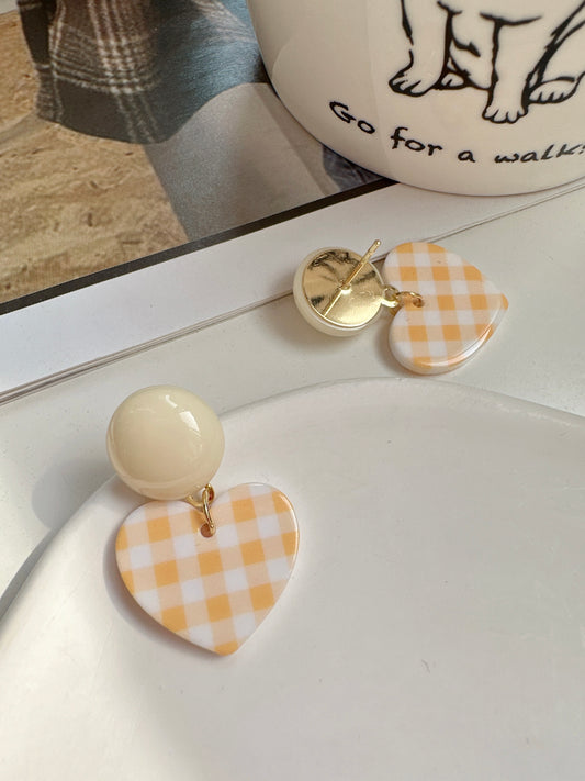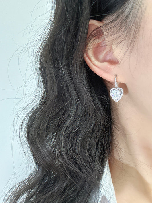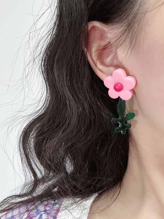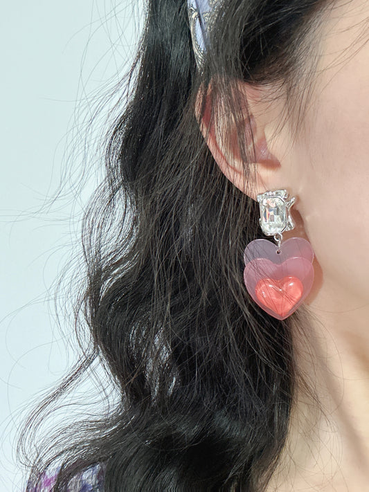 Pink Acrylic Double Heart Diamante Drop Earrings