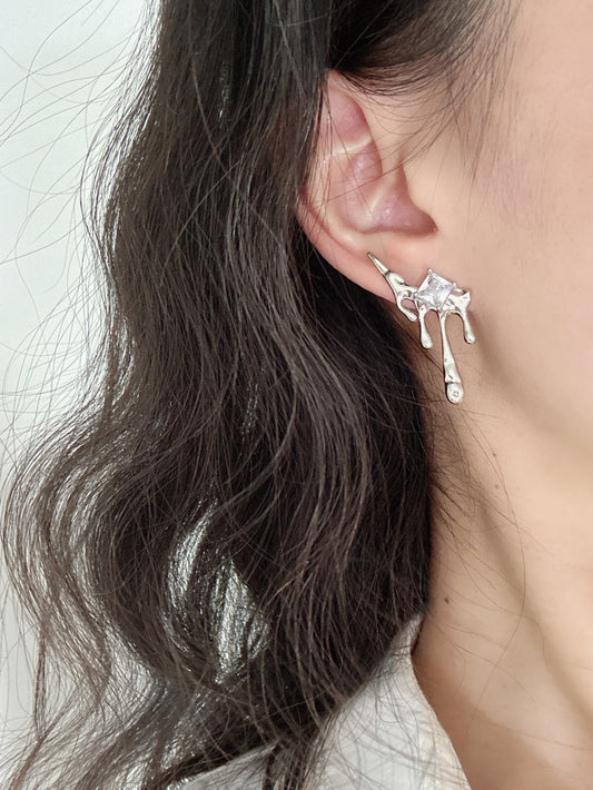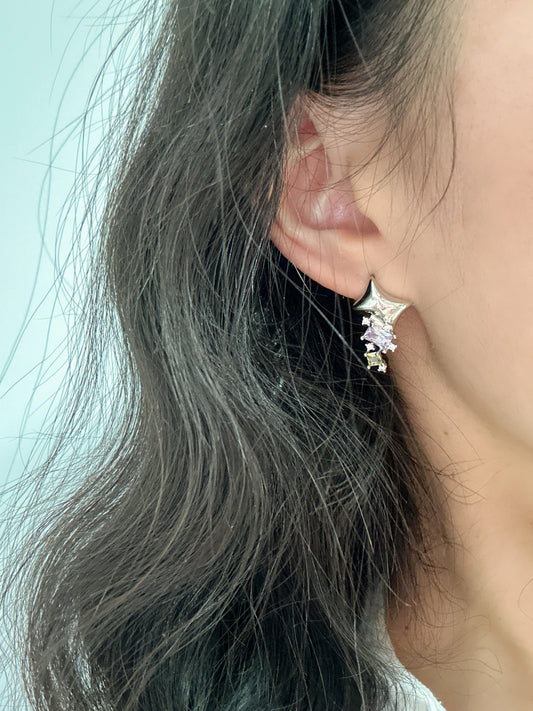 Silver Geometric Purple and Yellow Zircon Stud Earrings