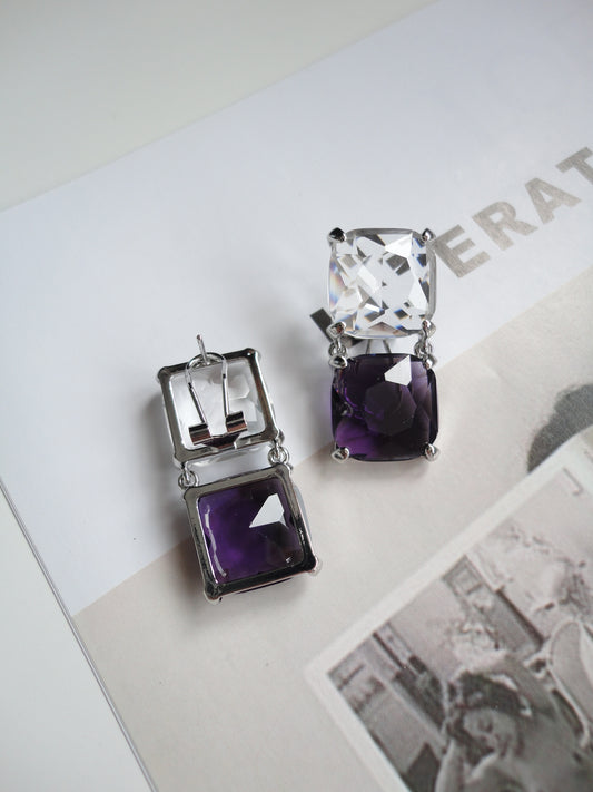 Gold Metal Transparent Crystal with Pearls Straight Claw Clip
