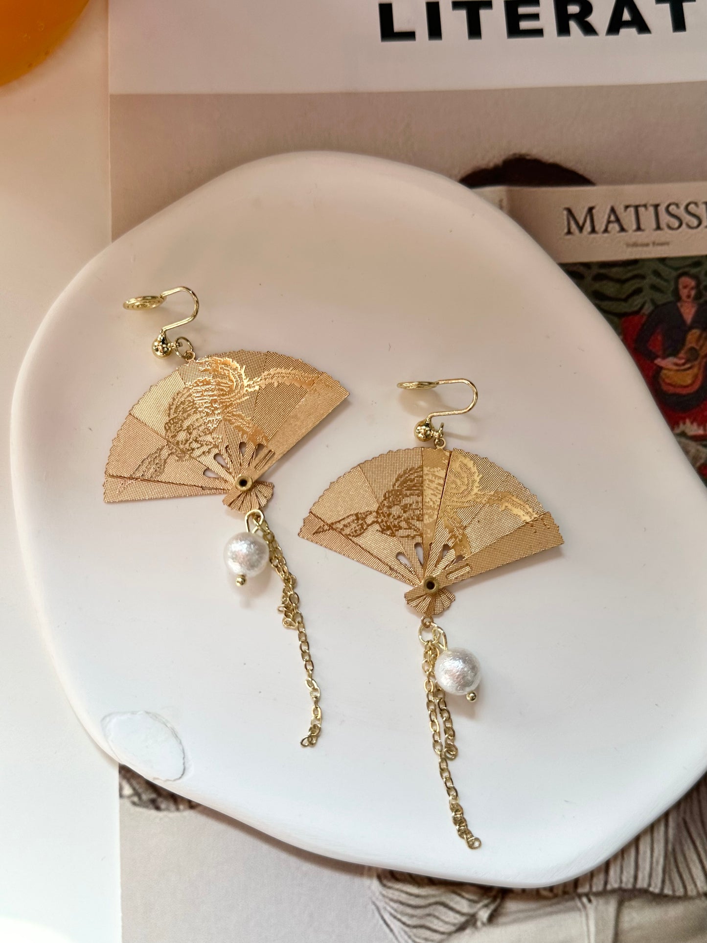 Add a blast of culture to your style with these Chinese style folding fan clip-on earrings! Featuring intricate detailing and a nifty foldable design, these earrings are sure to be the talk of the town. Clip 'em on for a hint of whimsy and a whole lotta style!