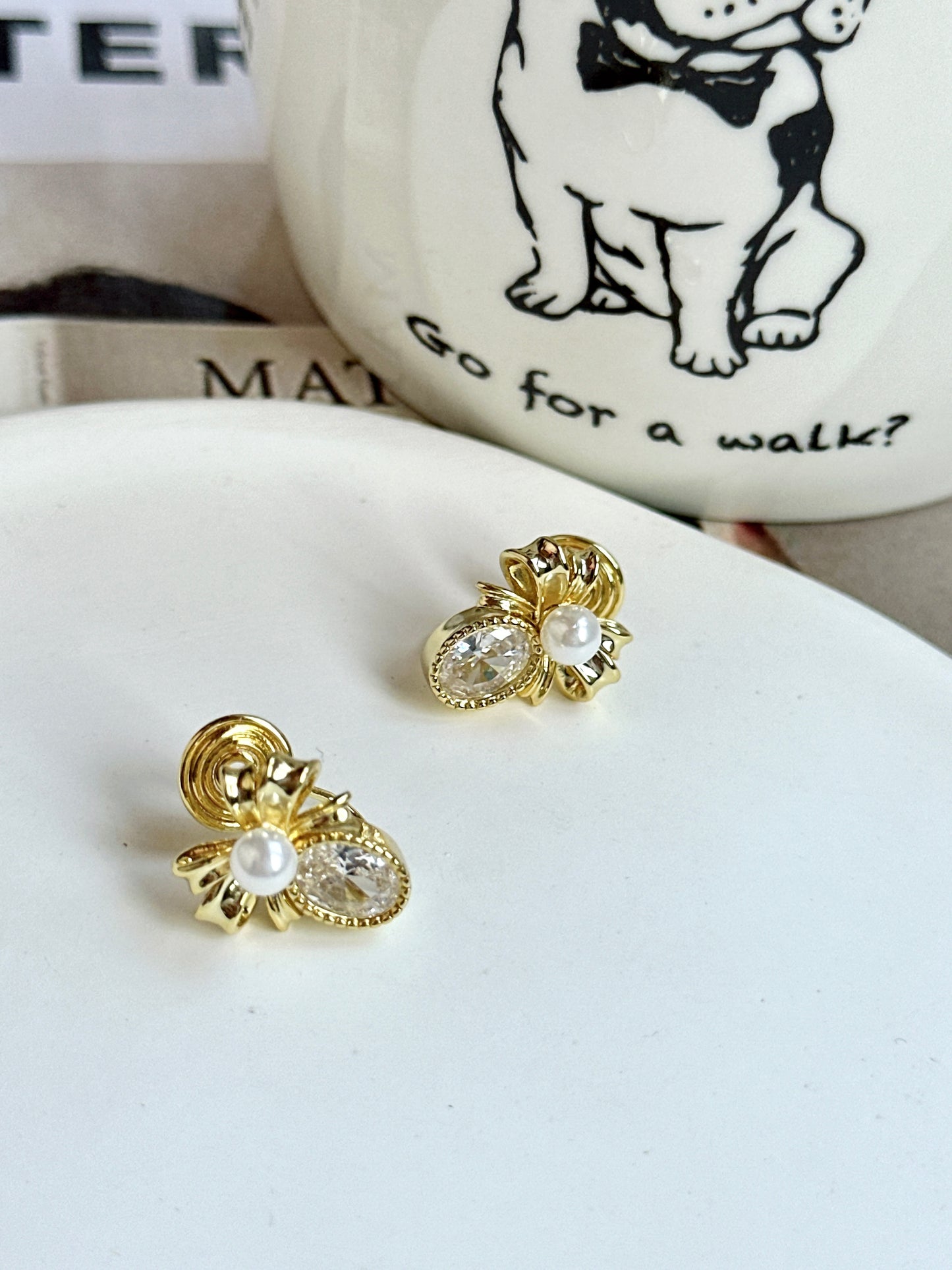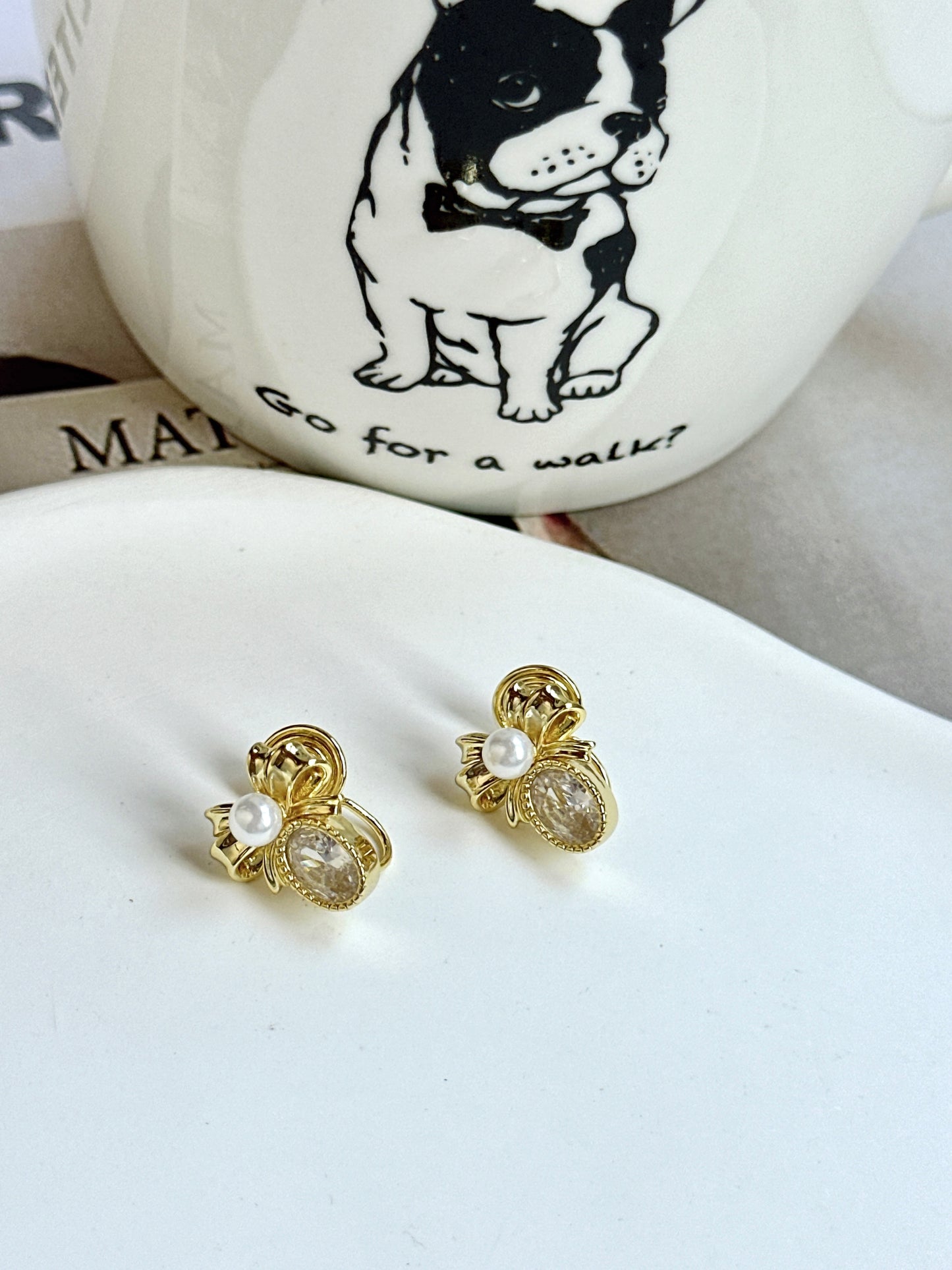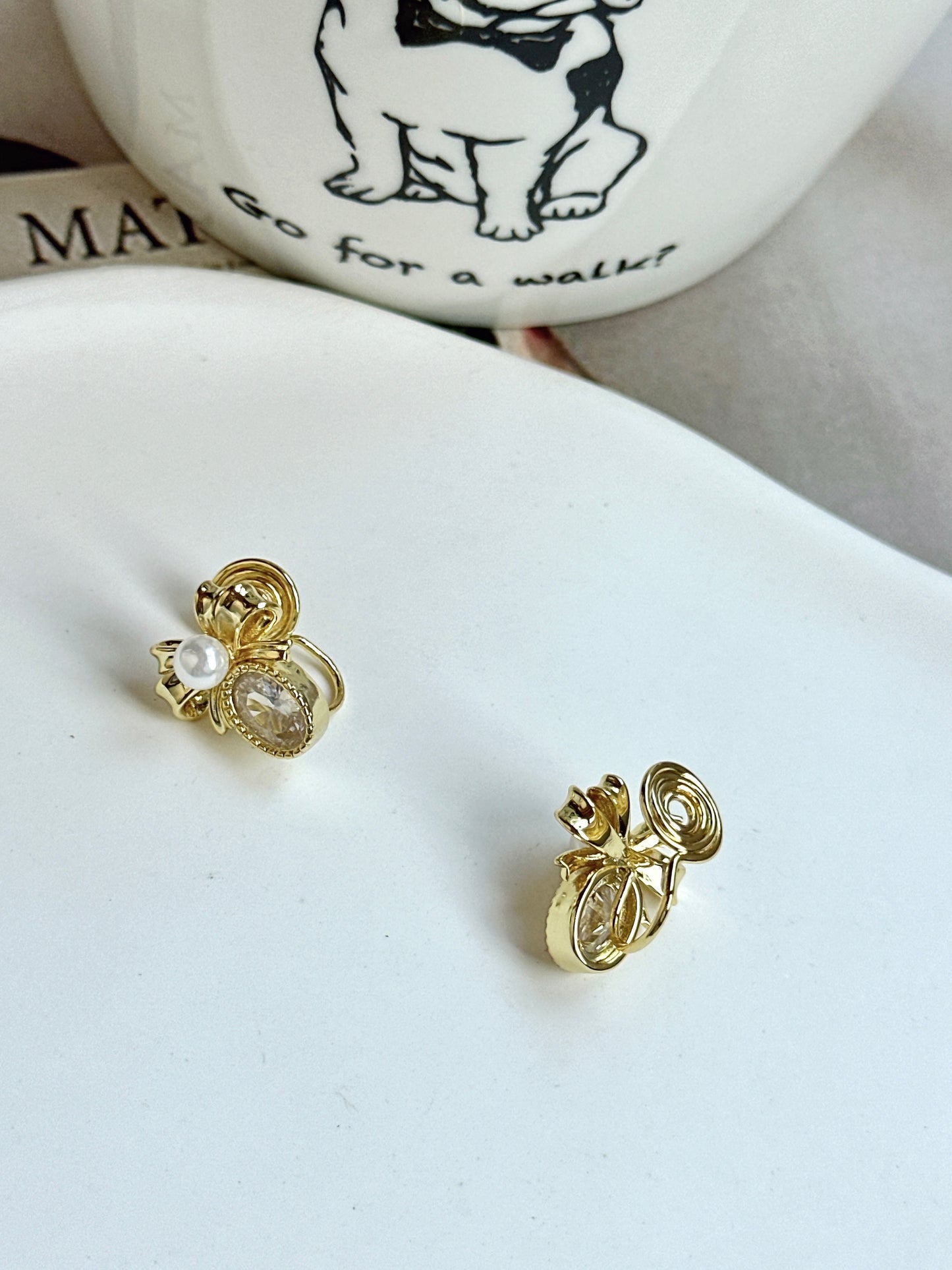 Add a touch of glamour and playfulness to your outfit with our Golden Bow and Zircon Clip On Earrings. These earrings feature a beautiful golden bow design with sparkling zircon stones that will surely catch everyone's attention. No piercing? No problem! These earrings are clip on for comfortable and versatile wear.