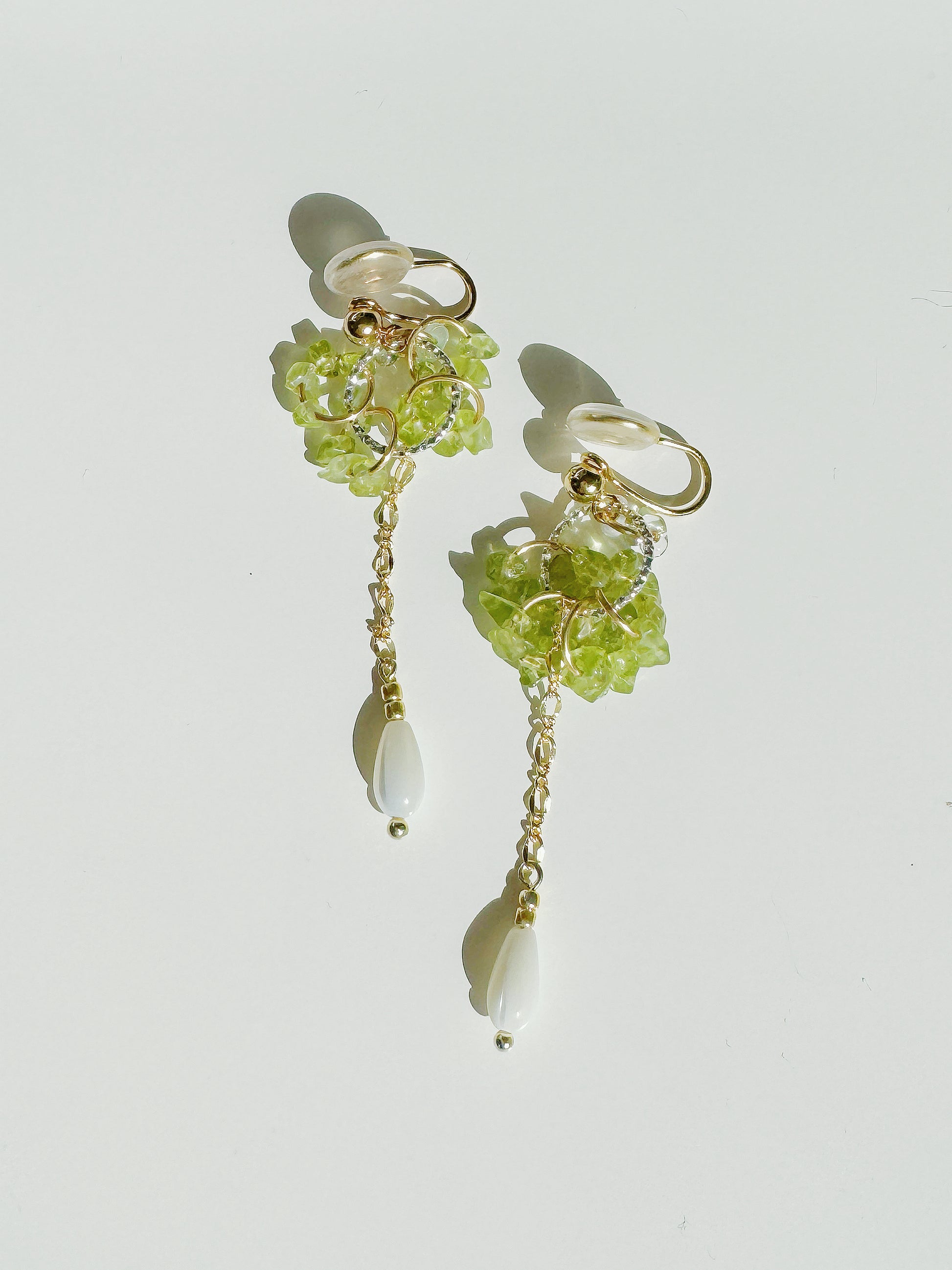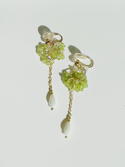Introducing the Golden Peridot Clip-On Earrings Handmade! These one-of-a-kind earrings are sure to add a touch of whimsy to any outfit. Handcrafted with love, they feature a beautiful golden design with stunning peridot gems. No piercings? No problem - their clip-on design makes them perfect for anyone!