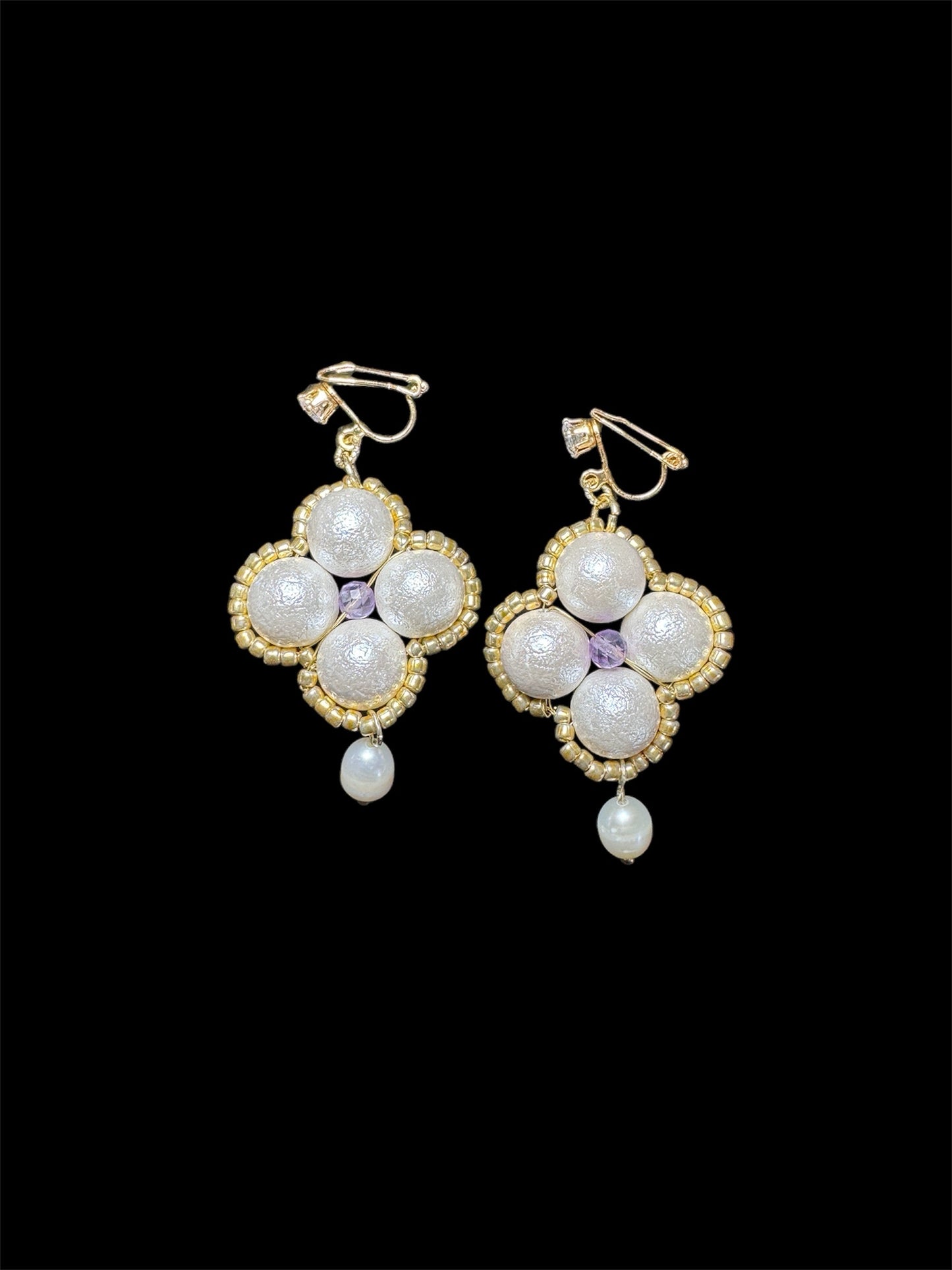 Elevate your style with these stunning handmade clip-on earrings featuring purple amethyst and freshwater pearls in a lucky four-leaf clover design. Feel lucky and add a touch of elegance to any outfit with these unique and beautiful earrings. Handcrafted to perfection, each pair is a work of art.