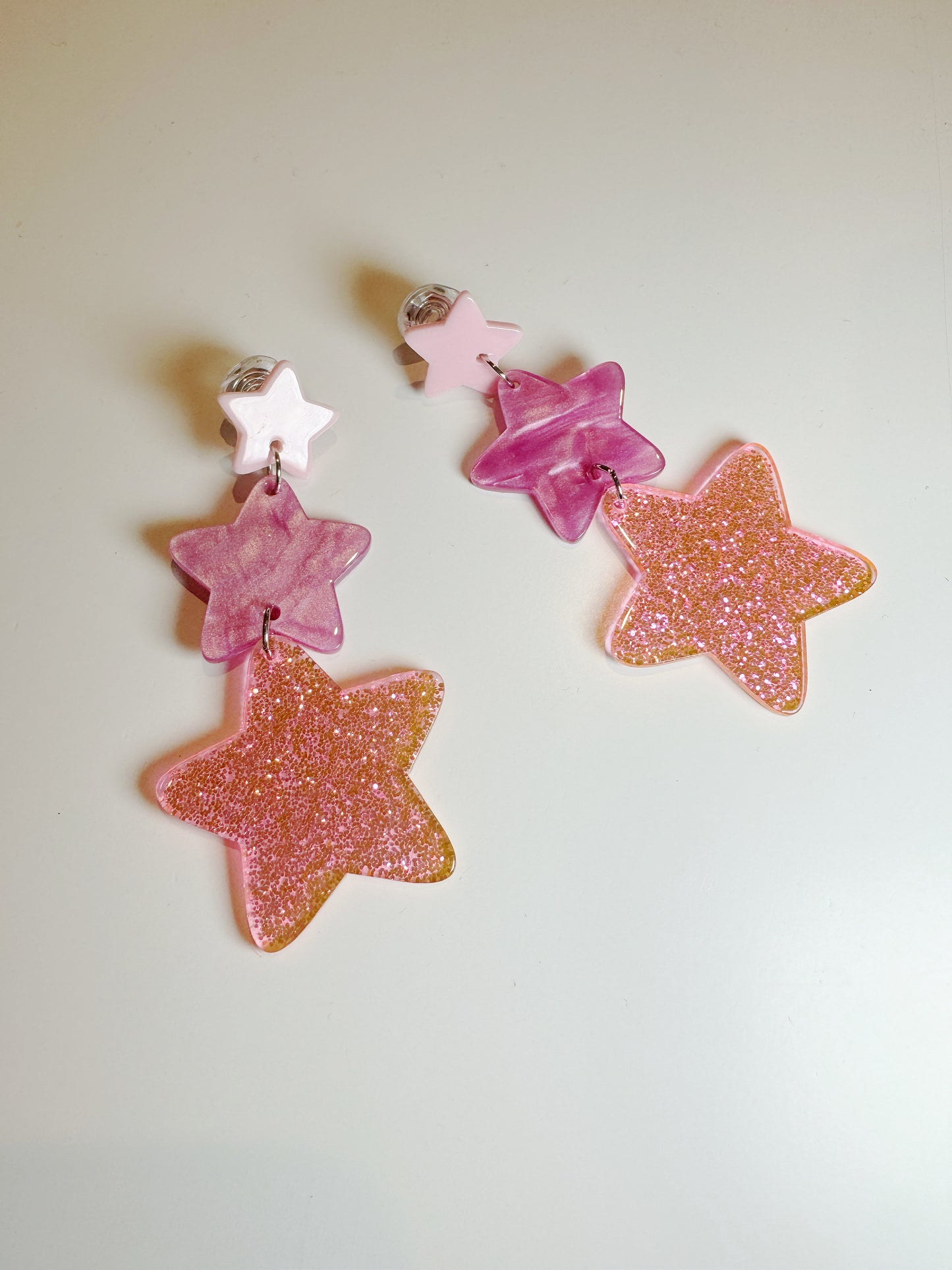 Pink Acrylic Stars Clip On Earrings