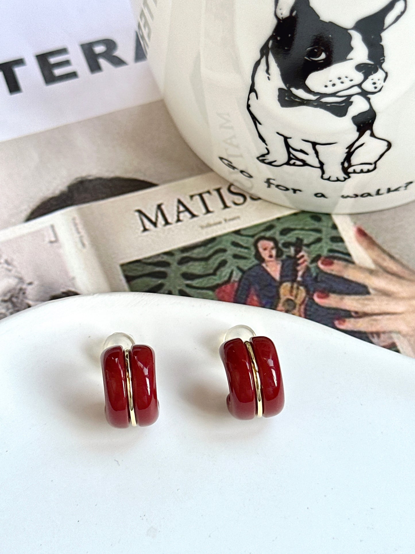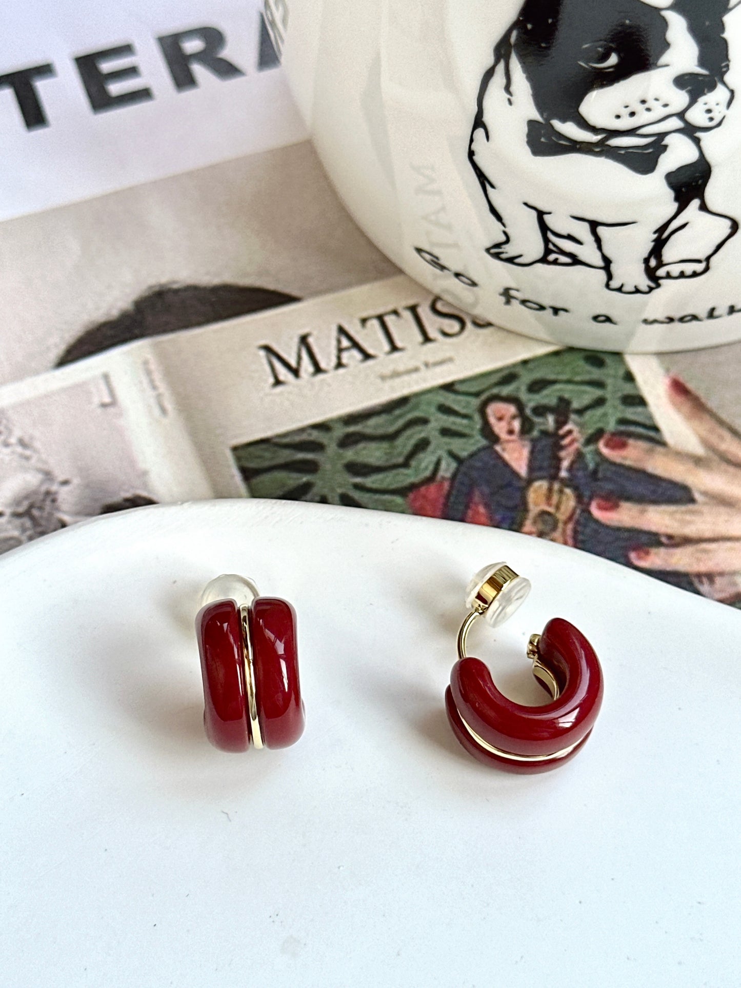 Add a touch of whimsy to your jewelry collection with our Red Candy Roll Hoop Clip On Earrings. These playful earrings feature a unique candy roll design, adding a pop of color and personality to any outfit. No pierced ears needed! (Candy not included.)