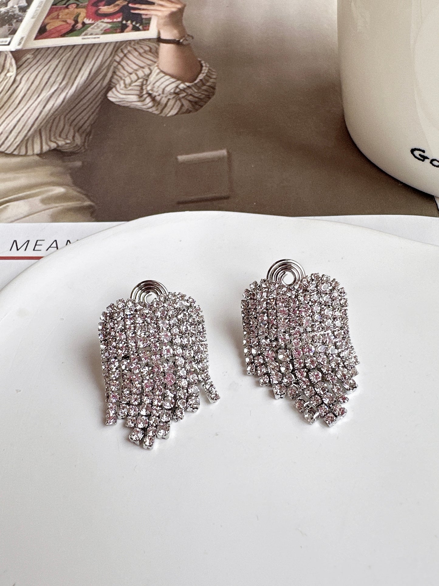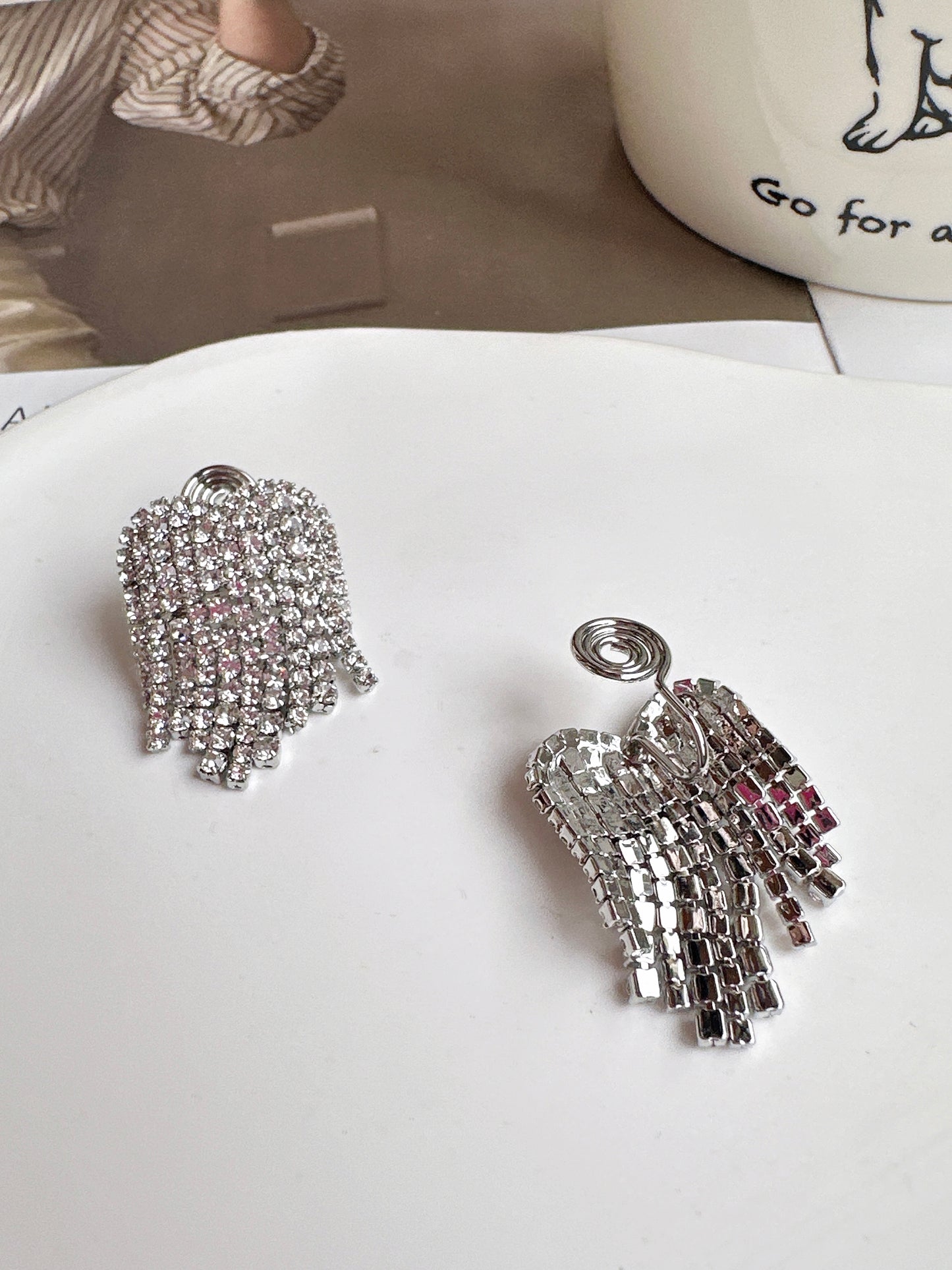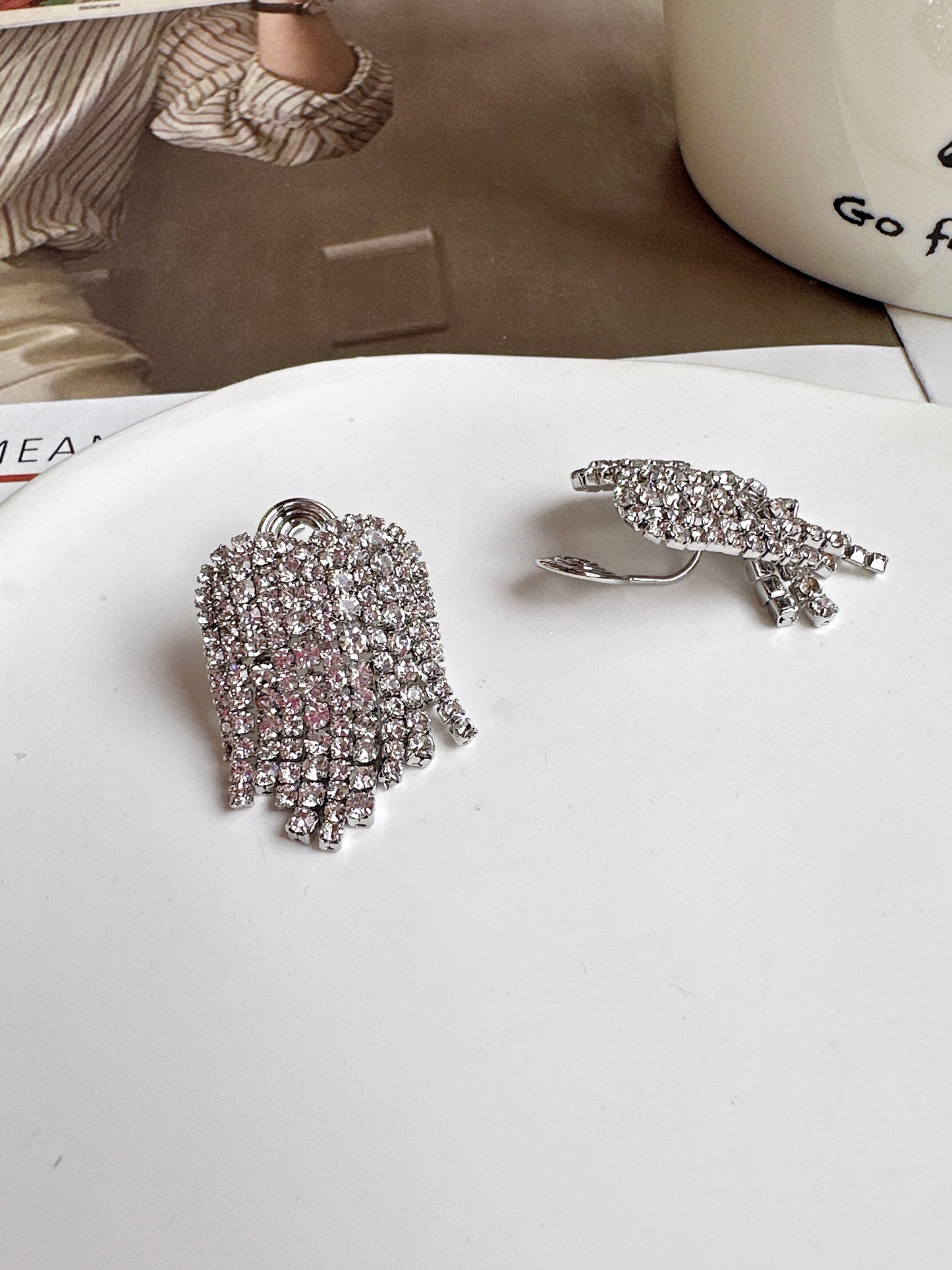 Indulge in luxury with our Silver Heart Diamante Cup Chain Tassel Clip On Earrings. Adorned with dazzling diamantes, this exquisite pair features delicate tassels for added grace. Get ready for a night out in style, as these earrings effortlessly elevate any outfit while exuding elegance and sophistication.