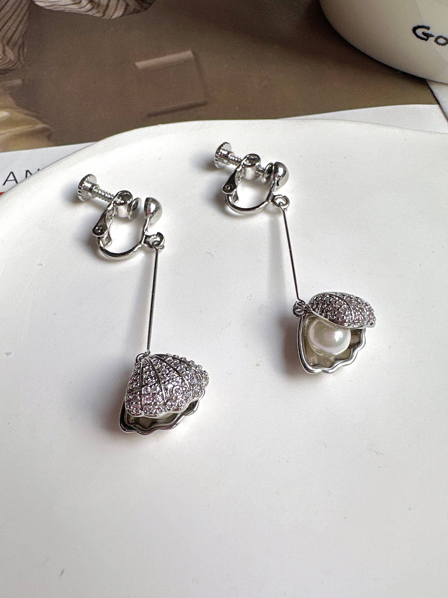 Unleash your inner mermaid with these quirky Silver Shall and Pearl Clip On Earrings! No need for pierced ears, these clip-ons will add a touch of whimsy to any outfit. Plus, the silver shell and pearl combo will have you feeling like a beach babe in no time. Dive into style with these unique earrings.