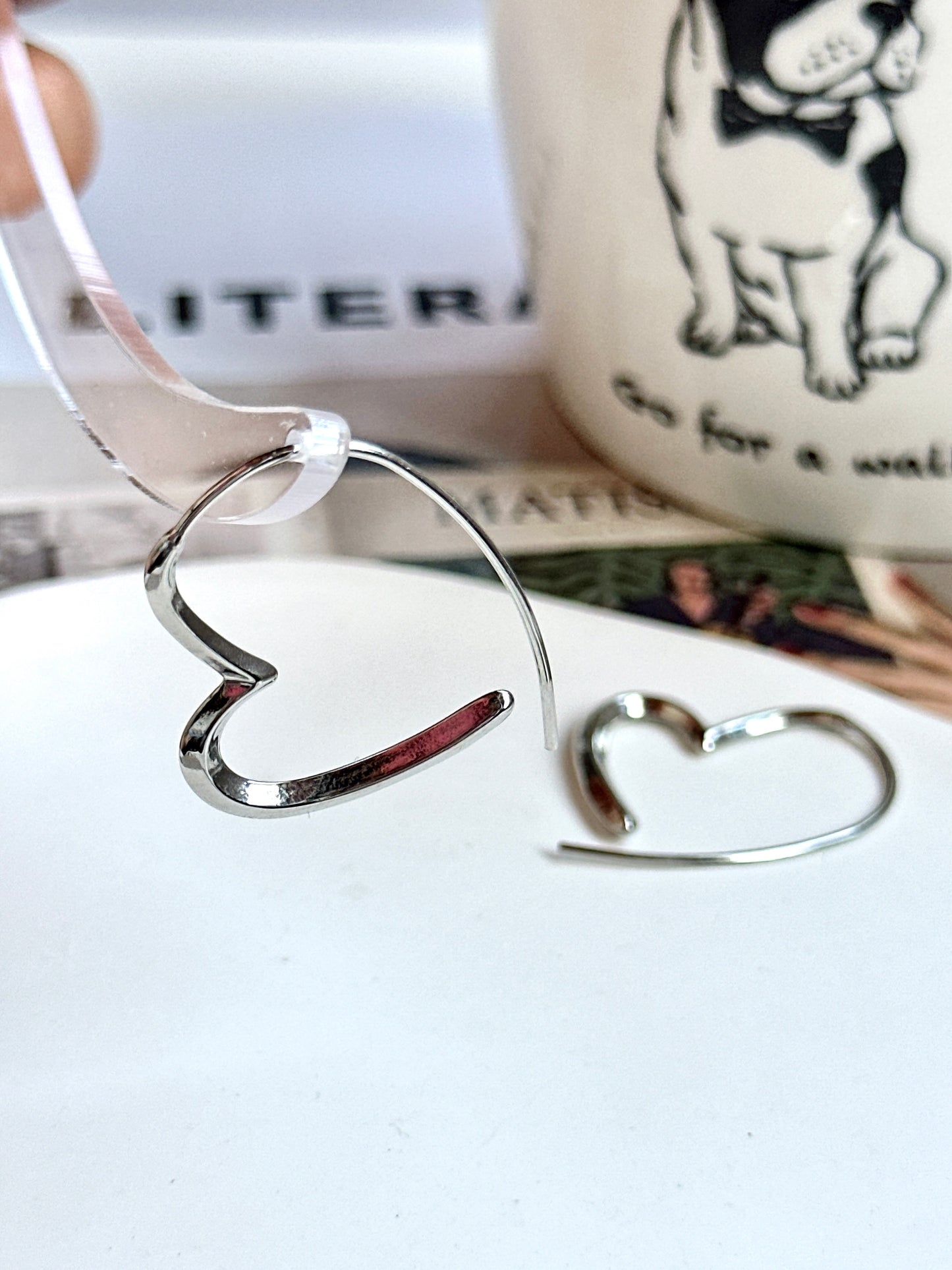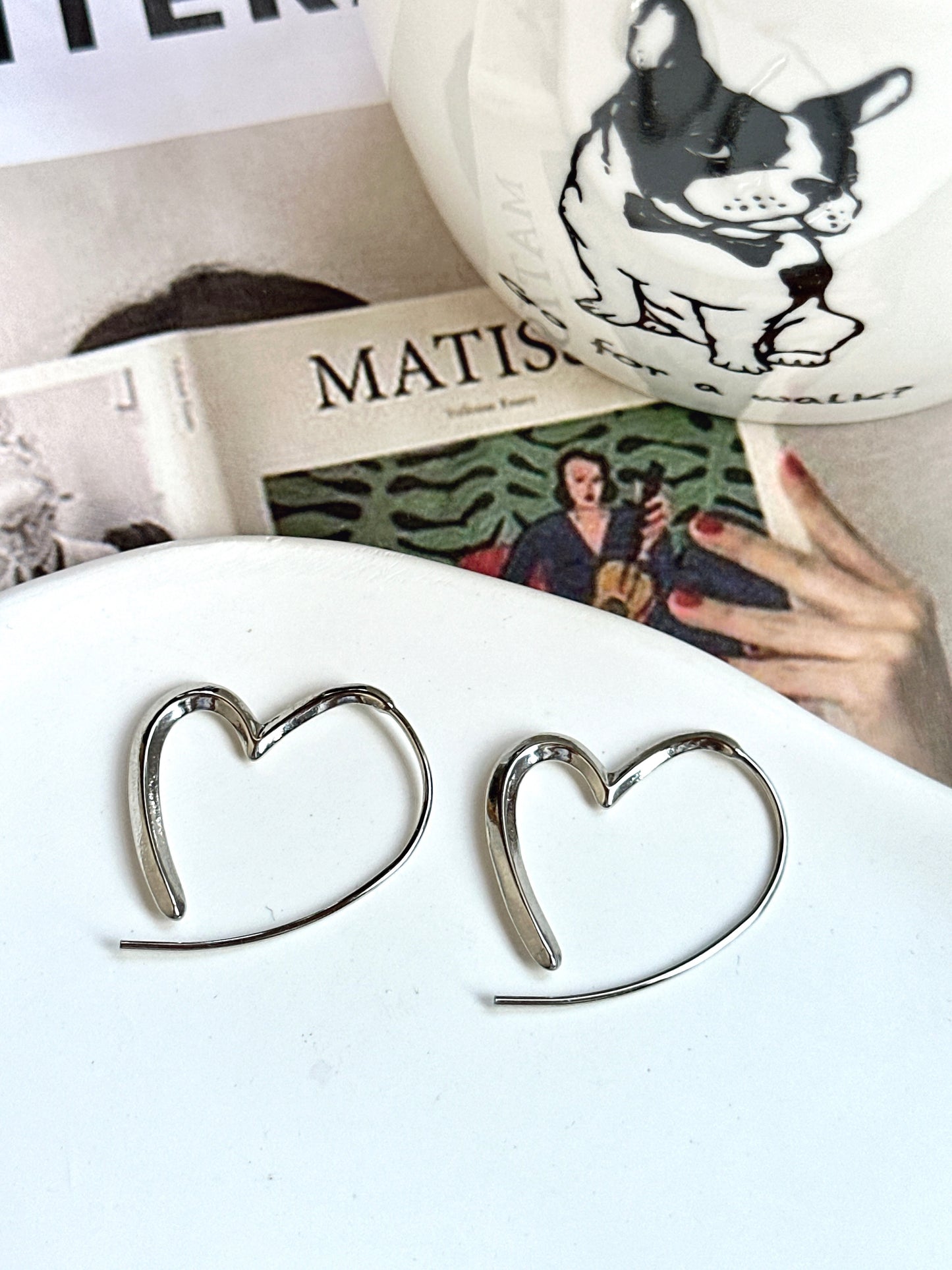 Add a touch of love to your outfit with these Silver Thin Heart Hoop Earrings. Made of high-quality silver, these earrings are both elegant and playful. Perfect for any occasion, they'll add a subtle yet charming accent to your look. Get ready to fall head over heels for these heart-shaped hoops.