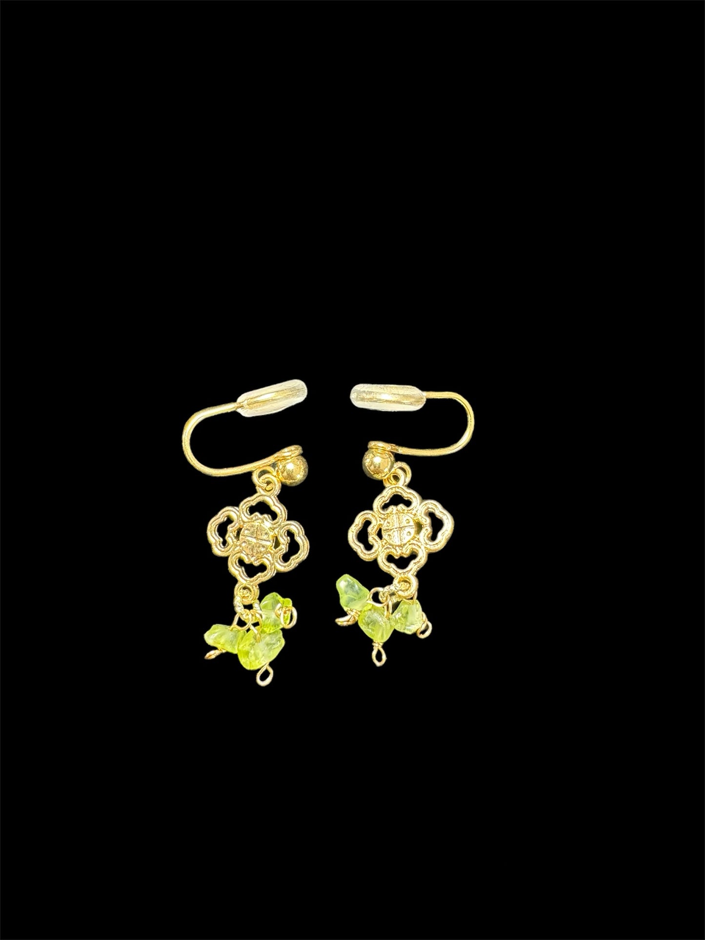 Vintage Style Clip-On Earrings with Green Beads โ€“ Handmade Non-Pierced Earrings