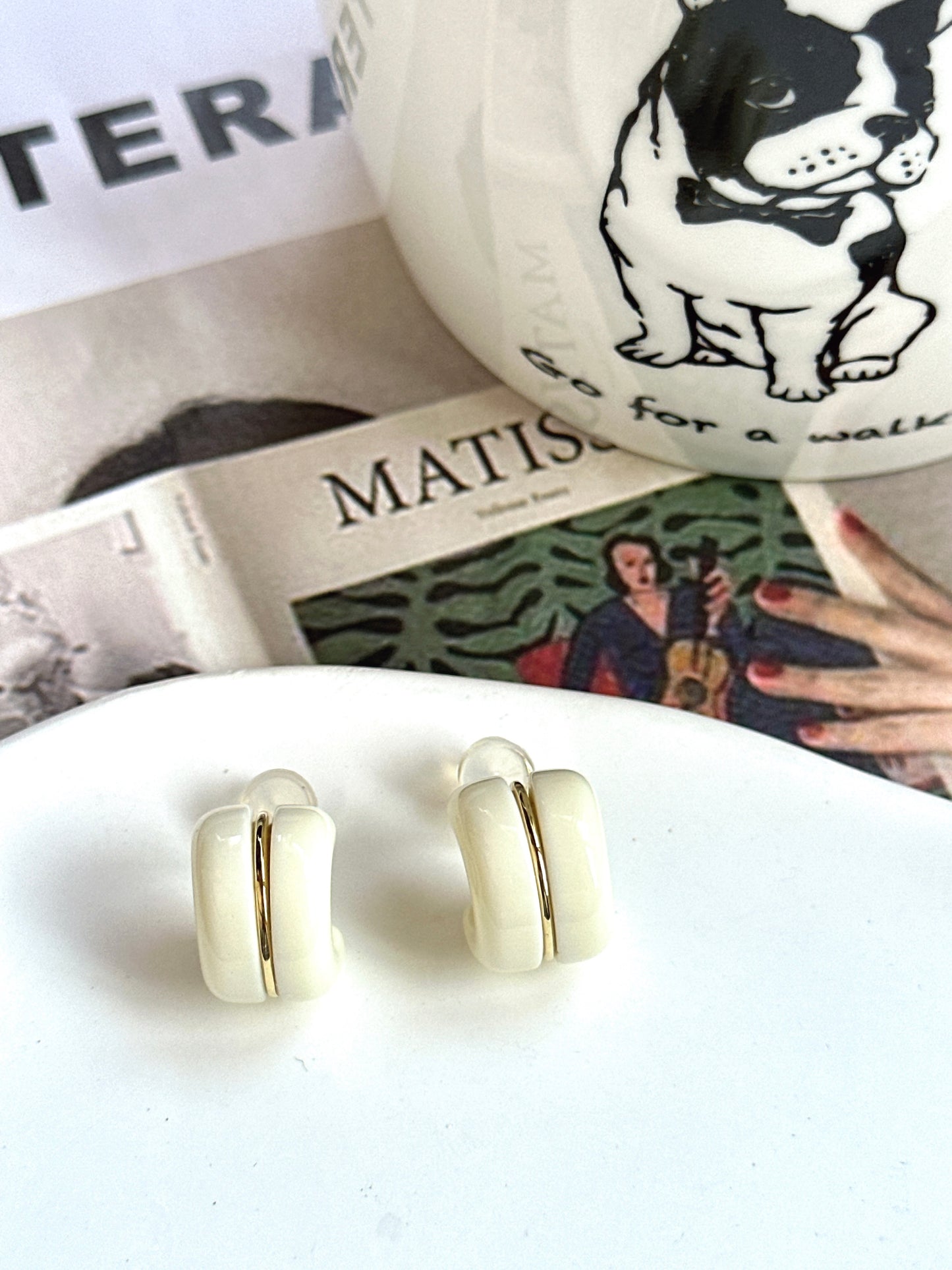 White Candy Roll Hoop Clip On Earrings