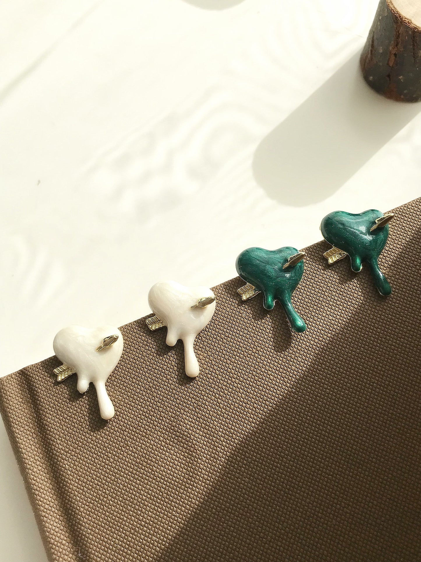 White Heart with Arrow Stud Earrings