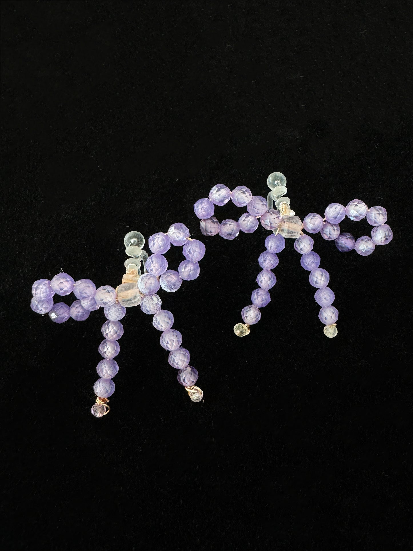 Get in touch with your inner fashionista with these Amethyst Beaded Bow Ear Clips. This unique accessory features beautiful amethyst beads and a playful bow design. Perfect for adding a touch of whimsy to any outfit.