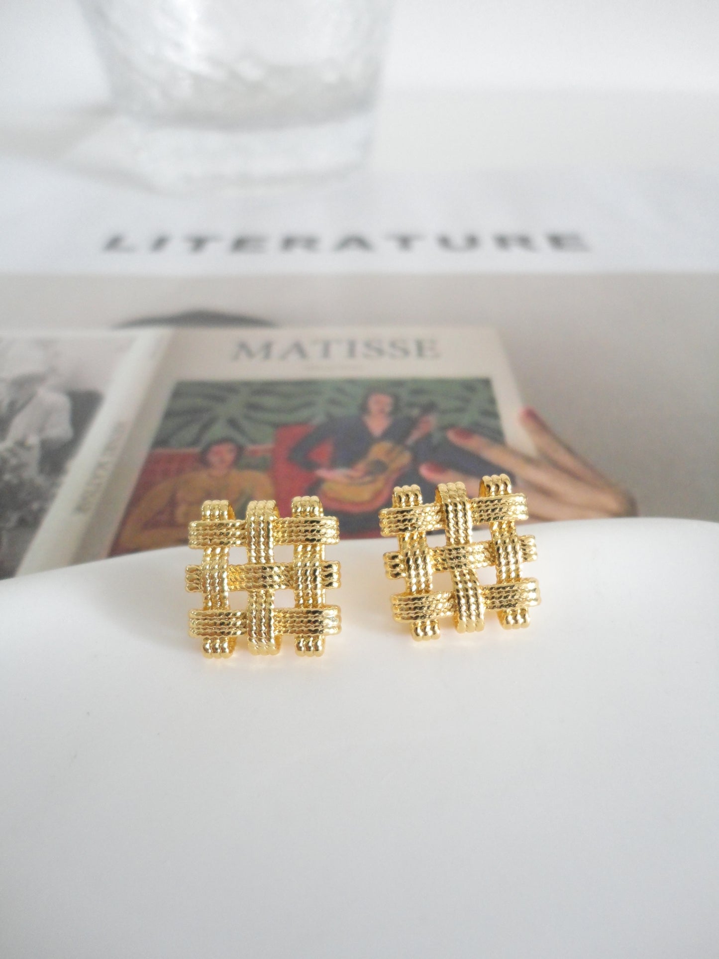 Golden Square Textured Stud Earrings