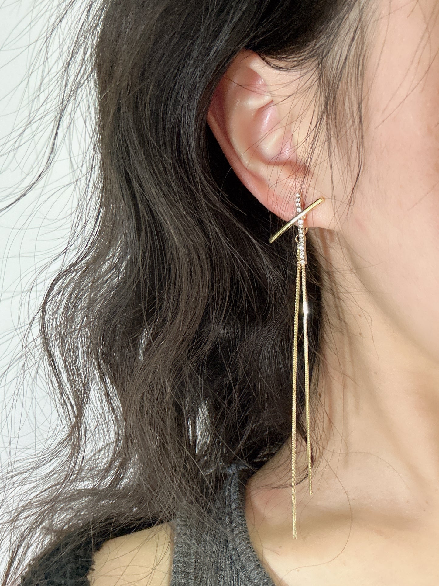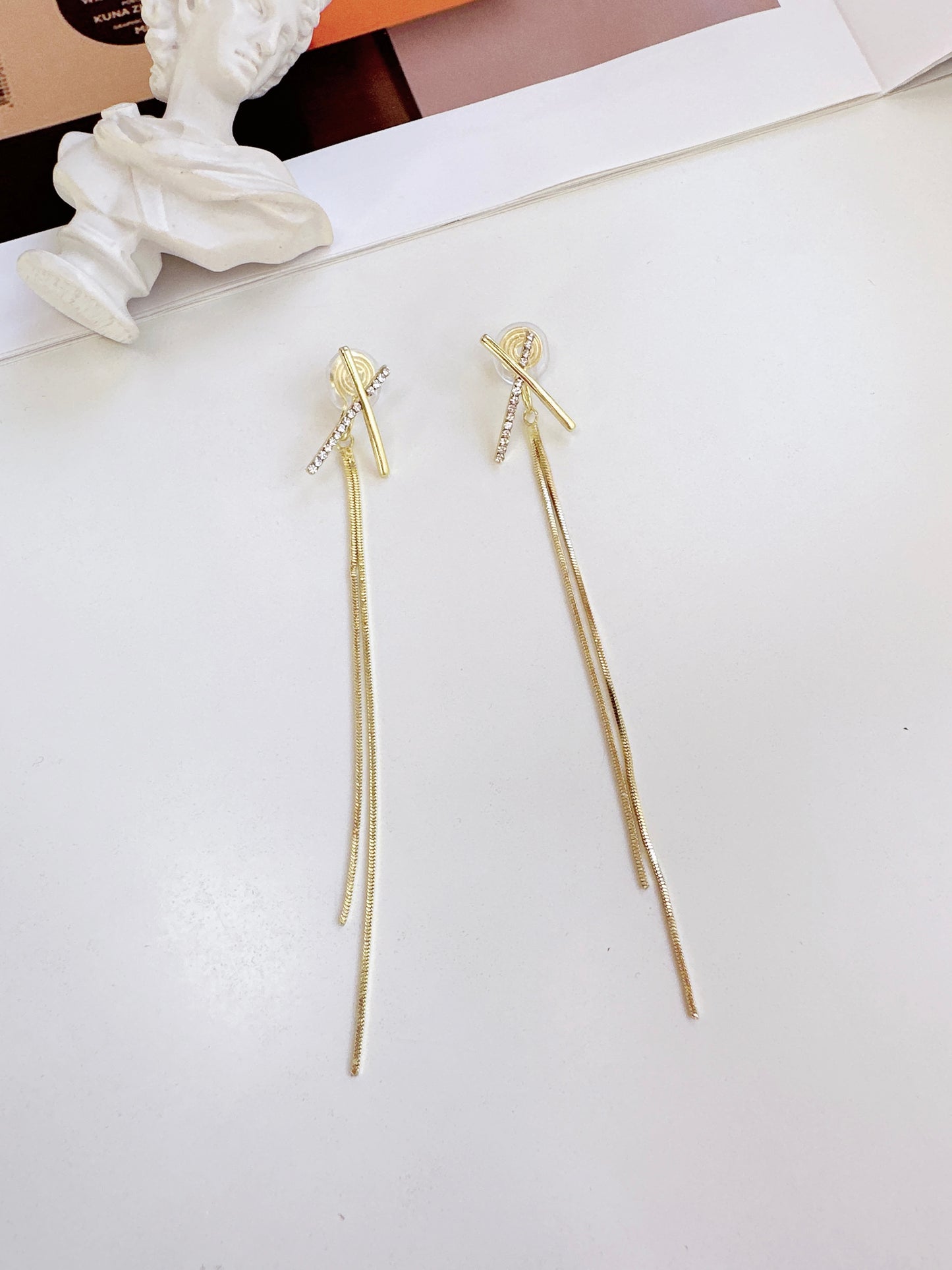 Make a statement with these stunning Golden X Shape Long Tassel Clip On Earrings! Add some flair to any outfit and dazzle everyone with their sun-kissed golden hue. Don't risk an earlobe piercing with these chic clip-ons, so you can be sure they'll stay put!