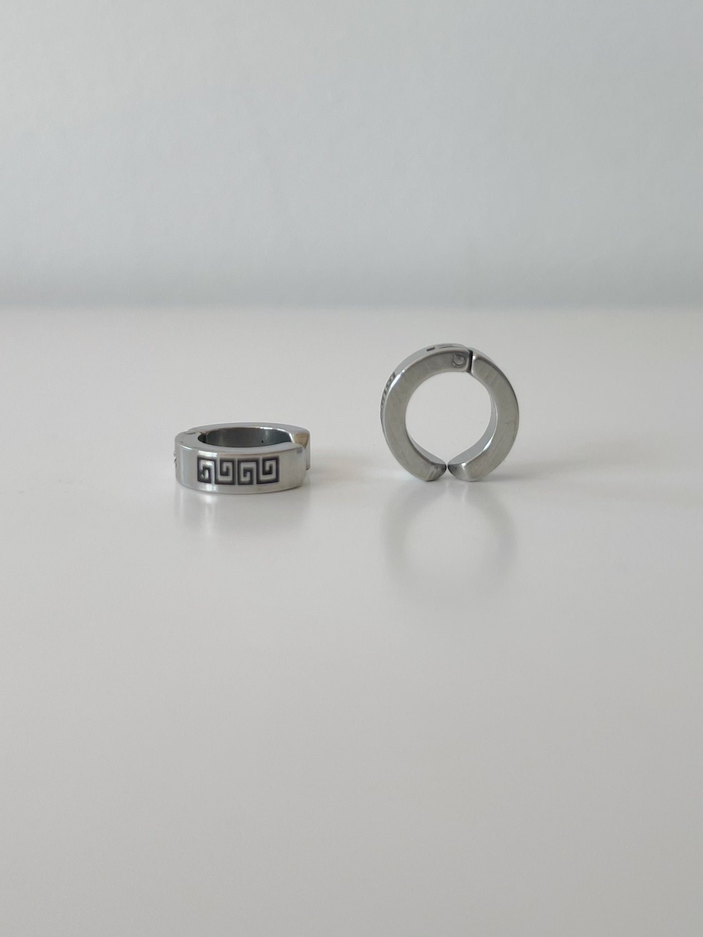 Men's Stainless Steel Geometic Print Hoop Clip On Earrings Silver