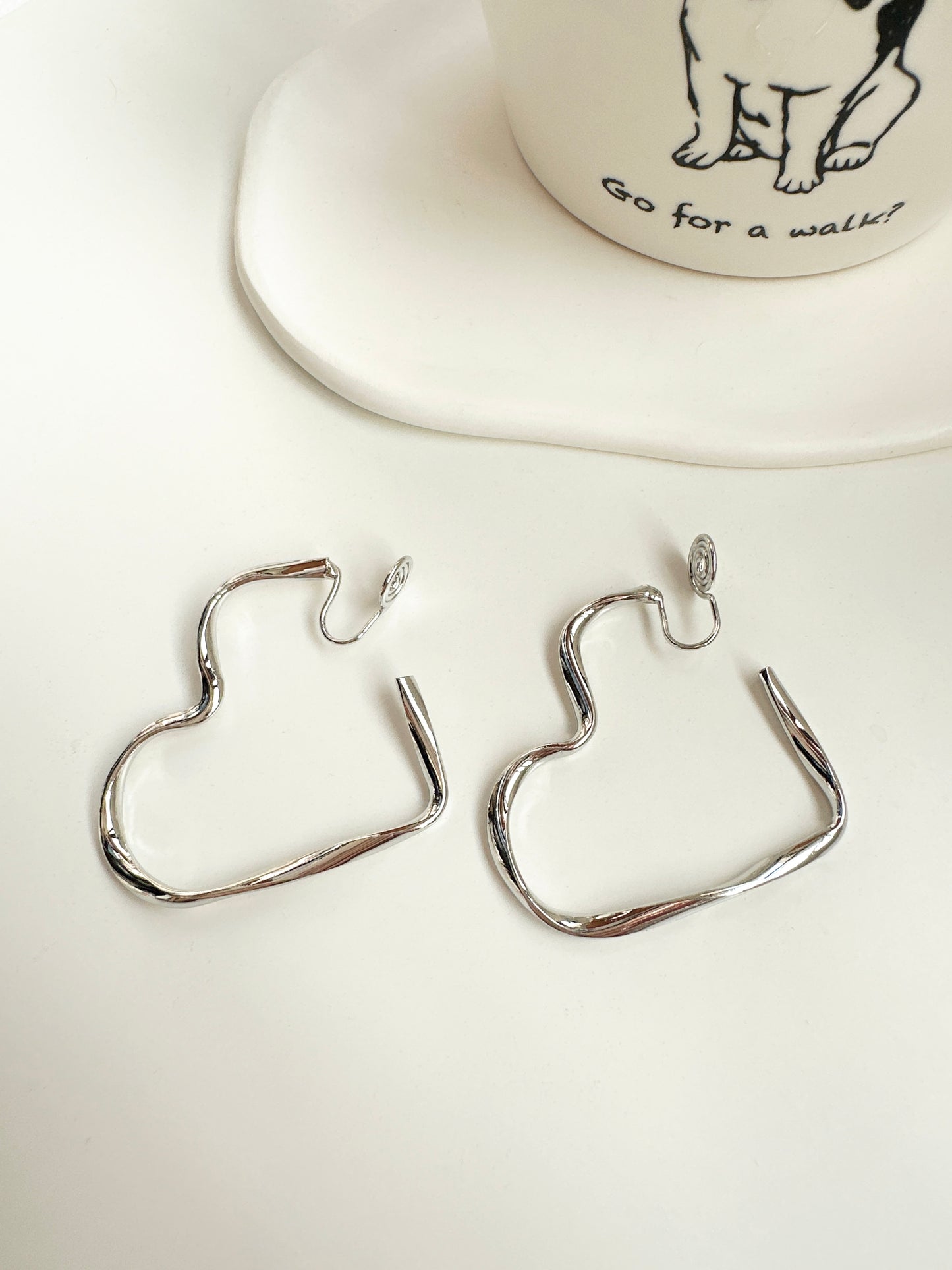 Silver Large Open Heart Hoop Clip On Earrings